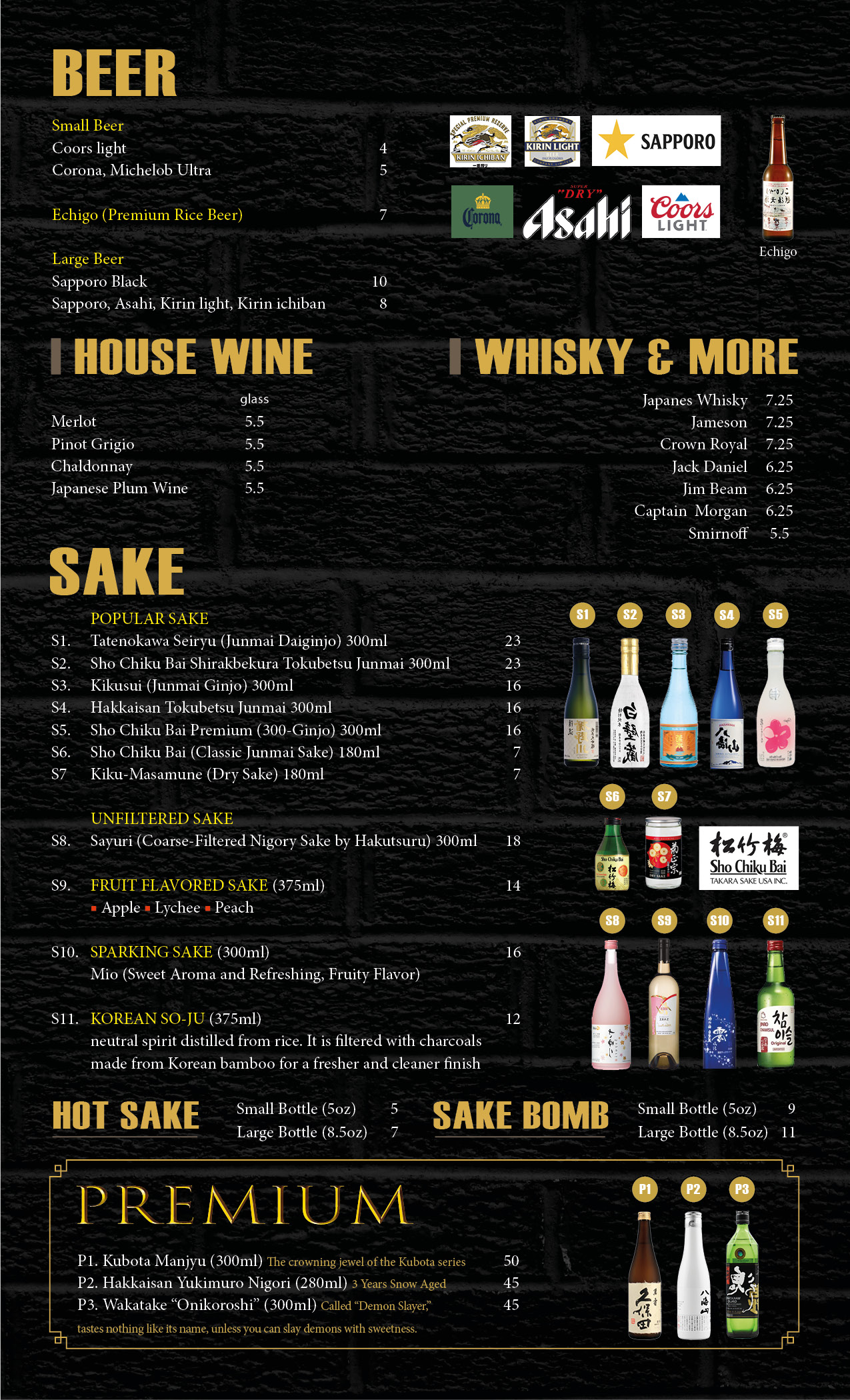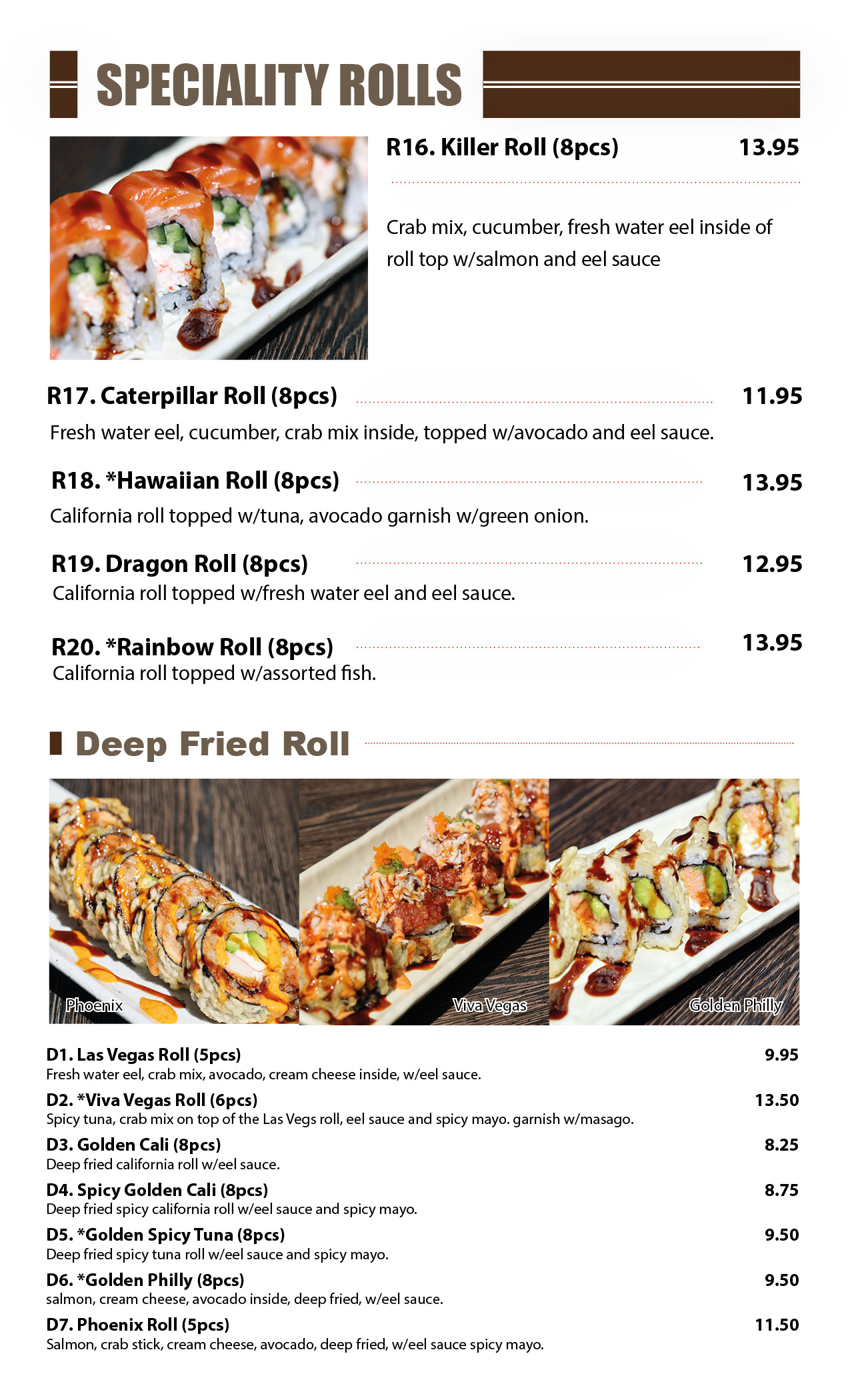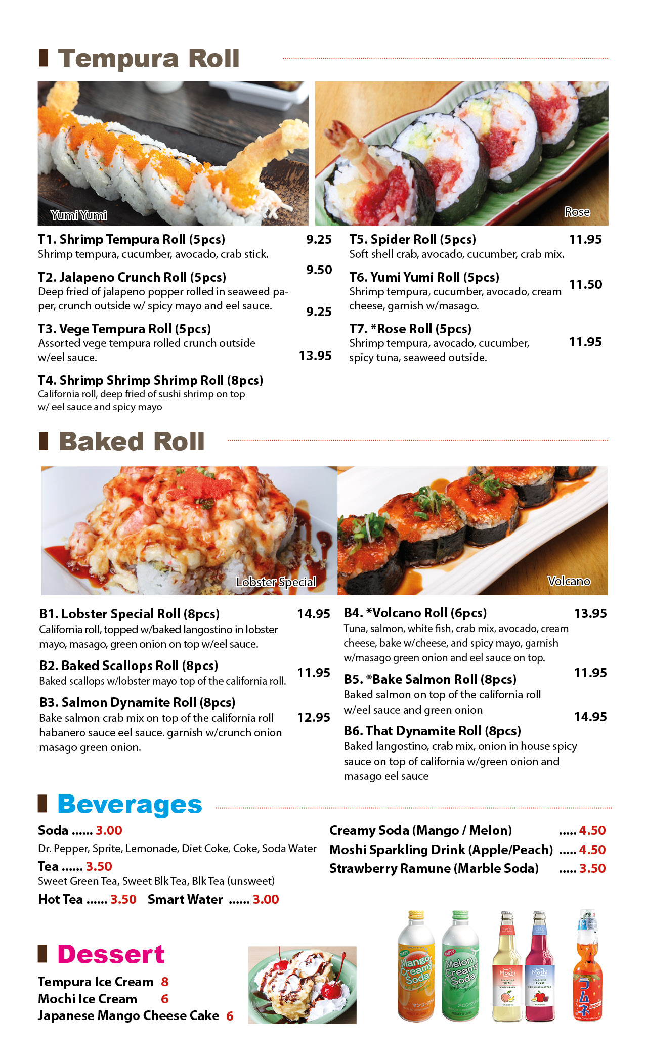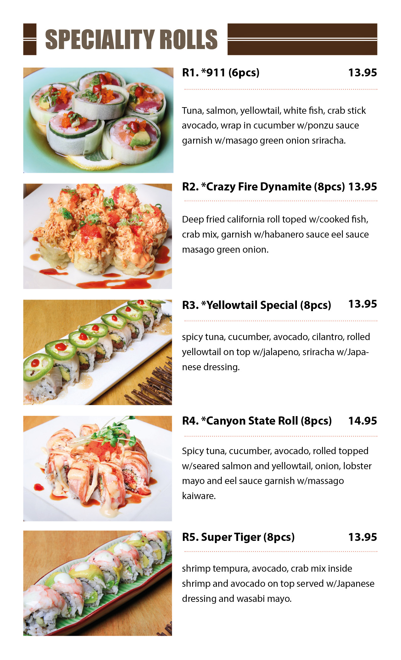 HAPPY HOUR APPETIZER ENTREE LUNCH SPECIAL BASIC ROLLS & SUSHI SPECIAL ROLLS #1 SPECIAL ROLLS #2 & ALCOHOL